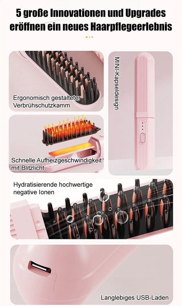 Nass- und Trockengebrauch Negativ-Ionen wiederaufladbare tragbare Haarglättungsbürste