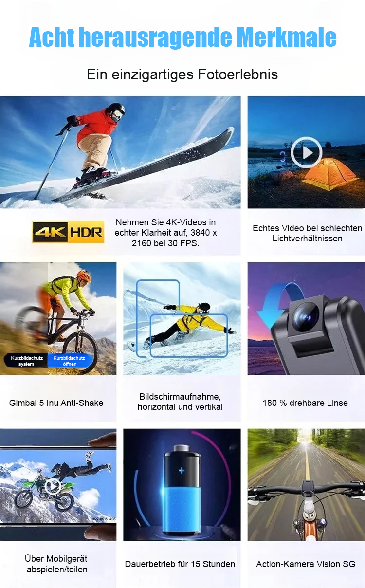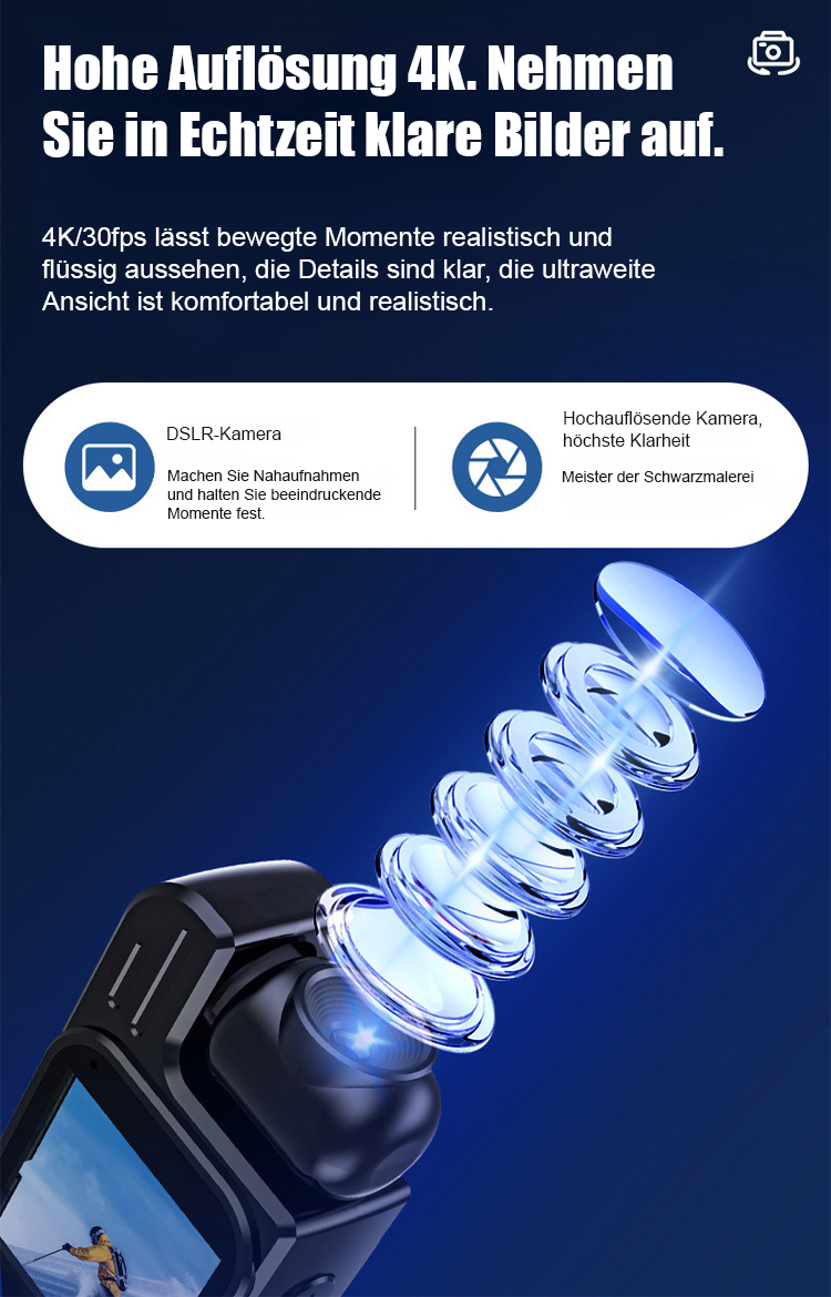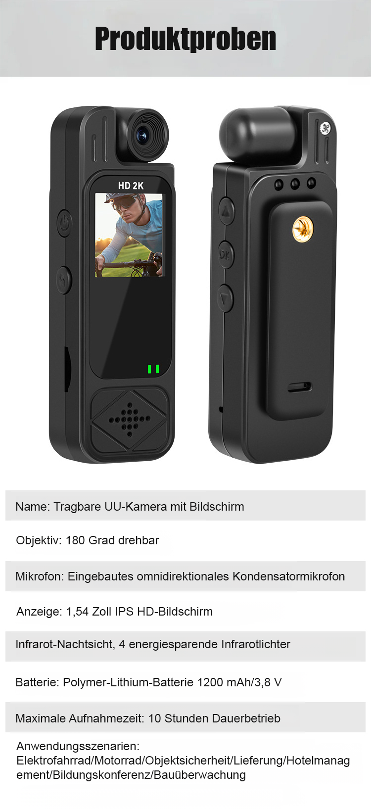 【Aufnahme mit nur einem Klick】Hochauflösende, tragbare Sportkamera mit Bildschirm✨Keine Steckdose oder Internetverbindung erforderlich