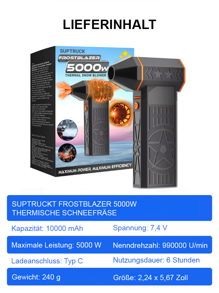 【Schneeräumung in 3 Sekunden, ohne Ihr Auto zu beschädigen🚗】Turbinenventilator zur Schneeräumung bei thermischen Stürmen🔥Schnee- und Staubentfernung, Wasserabgabe, Feuerentfachung, Aufblasen