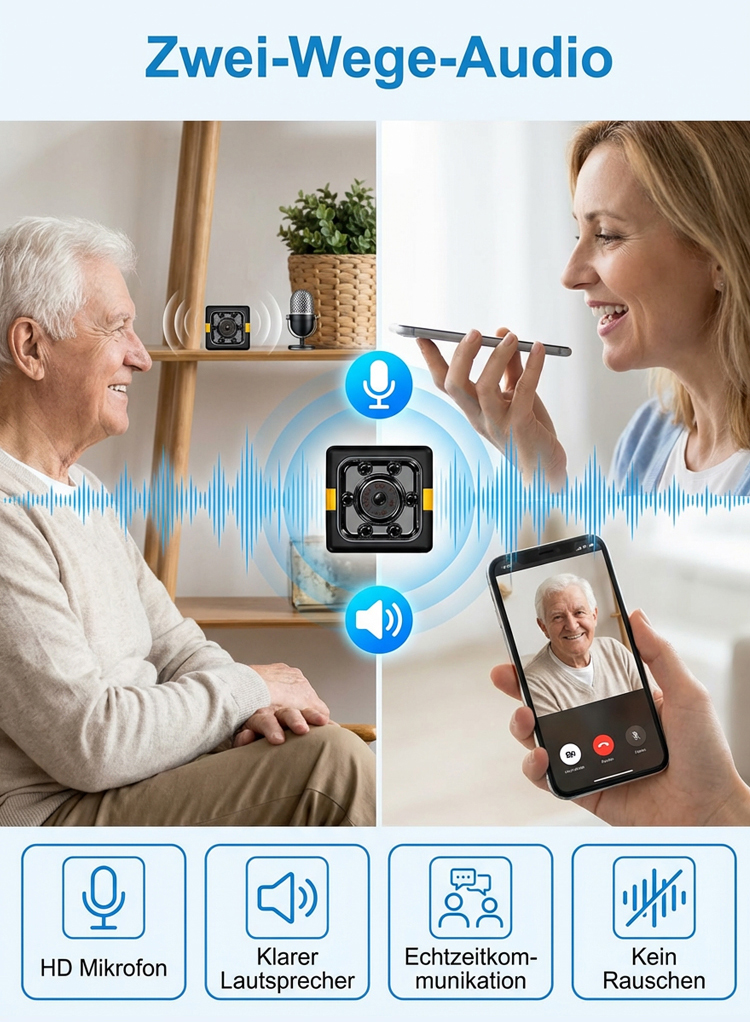 3MP Mini-Sicherheitskamera Kabellos | 100% Abo-frei | Montage ohne Bohren | AES-256 Datenschutz | Nachtsicht & KI-Alarm 🏠👁️