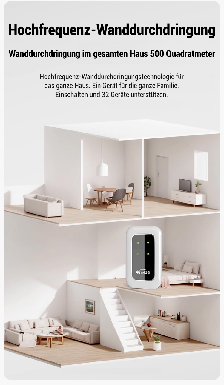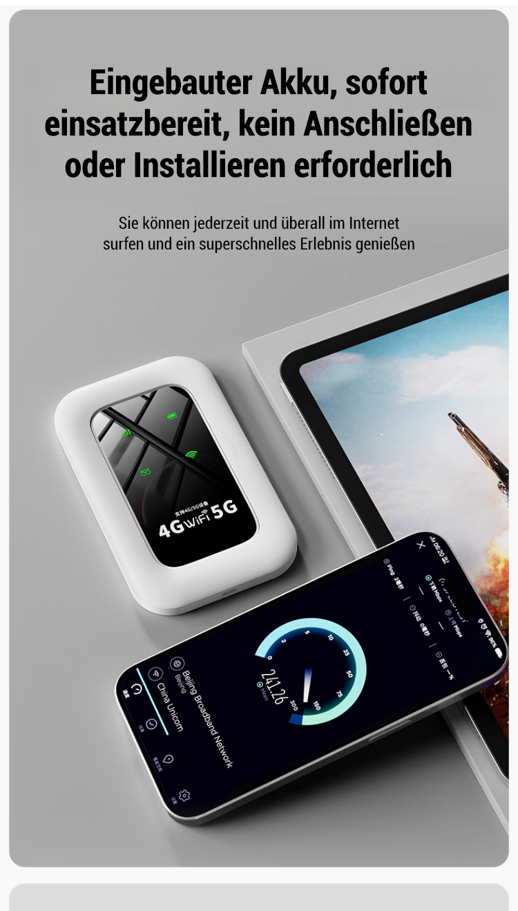[Ohne Vertrag, Keine Monatsgebühr] Mobiles 5G Highspeed WLAN Modem | 500 MBit/s AI-Signalverstärkung | Lebenslang Gratis-Internet | Ohne Schufa | Weltweite Abdeckung 🚀📶